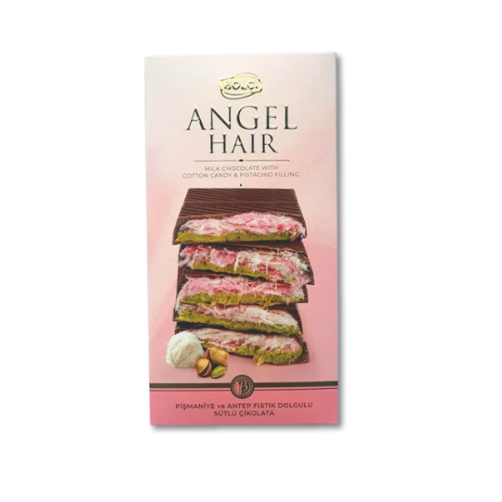 A Bolçi, uma das marcas mais prestigiadas da Turquia, transformou uma iguaria centenária em uma experiência de luxo com o Angel Hair. Esta não é uma barra de chocolate comum. É uma obra de arte que combina um chocolate ao leite aveludado com um recheio de pişmaniye — um doce ancestral turco, feito de fios de açúcar que se desfazem como seda na boca — e pedaços de pistache, a joia da confeitaria do Oriente Médio.