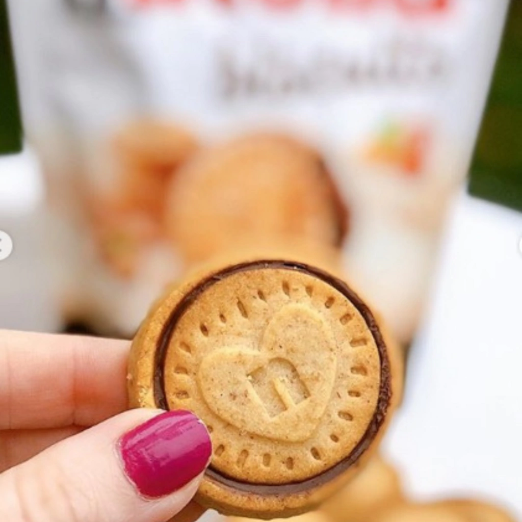 Imagine a crocância de um biscoito recém-saído do forno, dourado e levemente amanteigado. Agora, recheie isso com o creme de avelã mais amado do planeta, a Nutella, em sua versão mais cremosa e envolvente. É exatamente essa explosão de textura e sabor que acontece quando você abre um pacote.