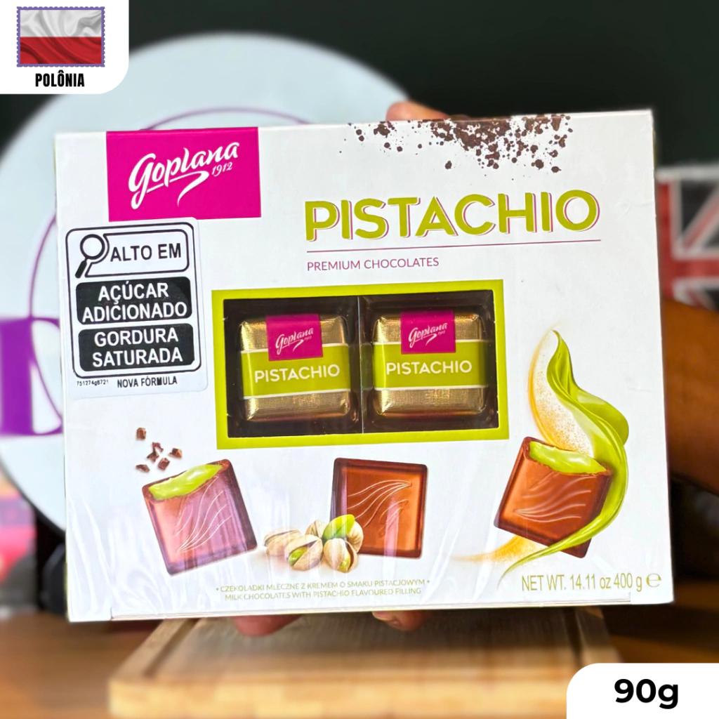 Direto da Europa, esse chocolate premium da Goplana combina a suavidade do chocolate ao leite com o sabor único e levemente amanteigado do pistache. Cada caixinha vem recheada com quadradinhos delicadamente recheados, perfeitos para quem ama uma experiência doce, sofisticada e diferente do comum.